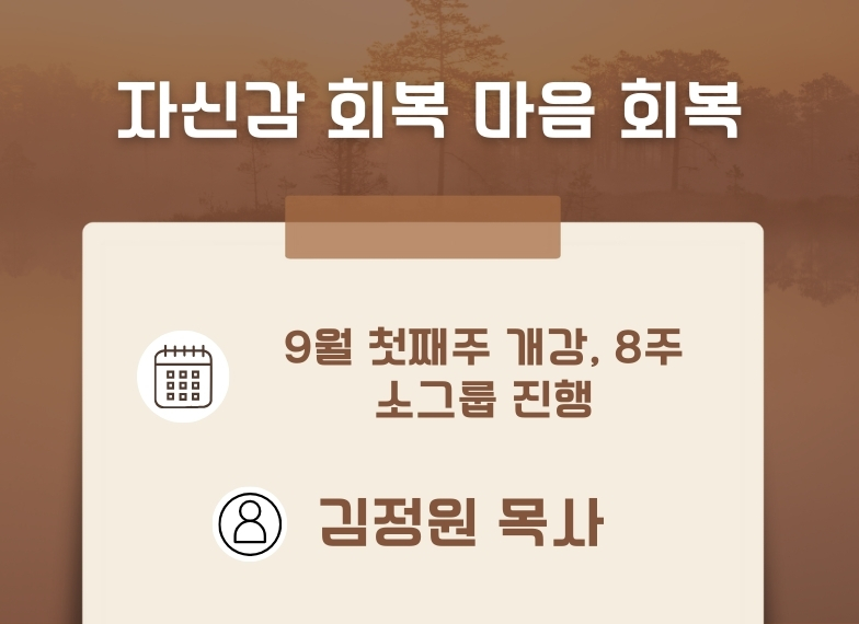 자존감 회복과 마음회복 클래스는 영적 성숙을 원하시는 성도님들에게