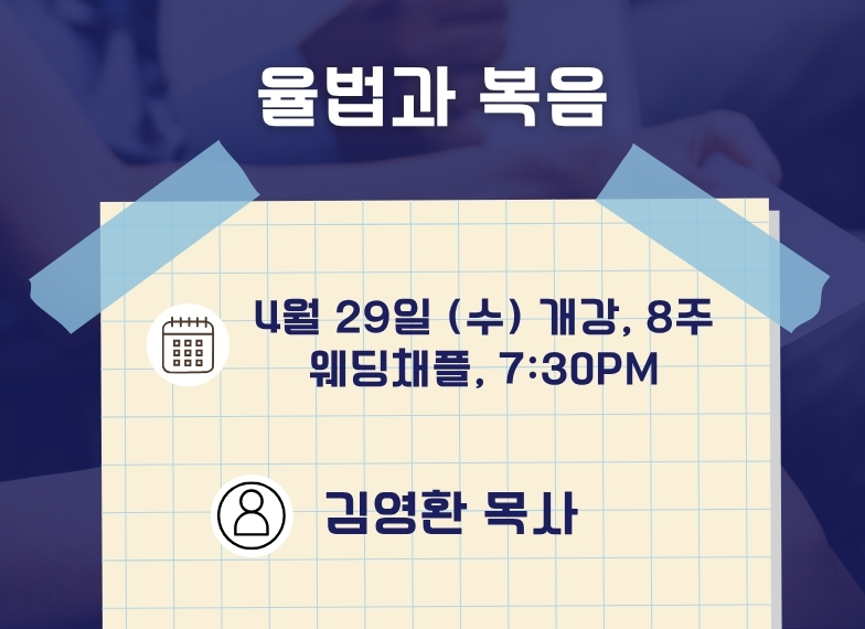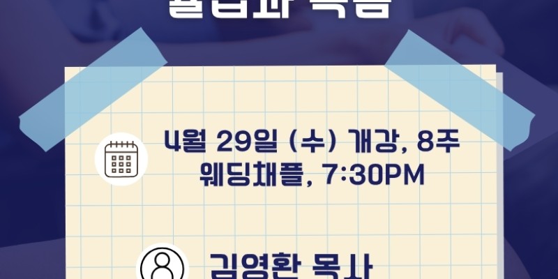 개강 : 4/29(수) 7:30PM 웨딩채플, 8주 과정