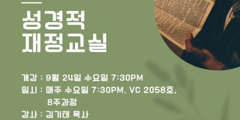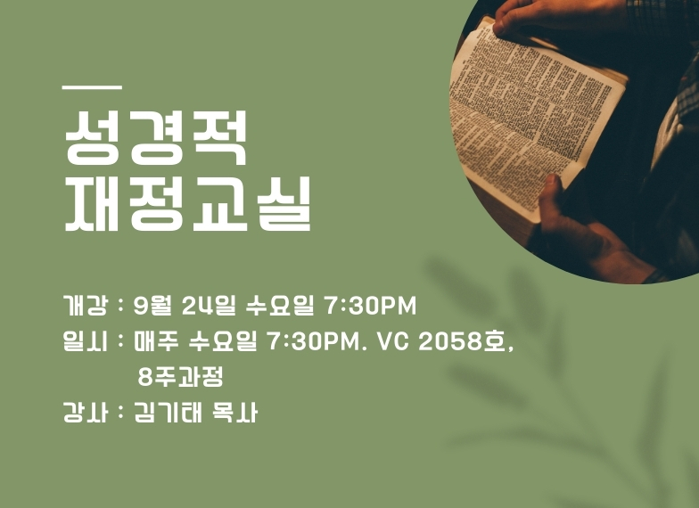 성경적 재정교실은 크리스챤들이 물질을 다룸에 있어서