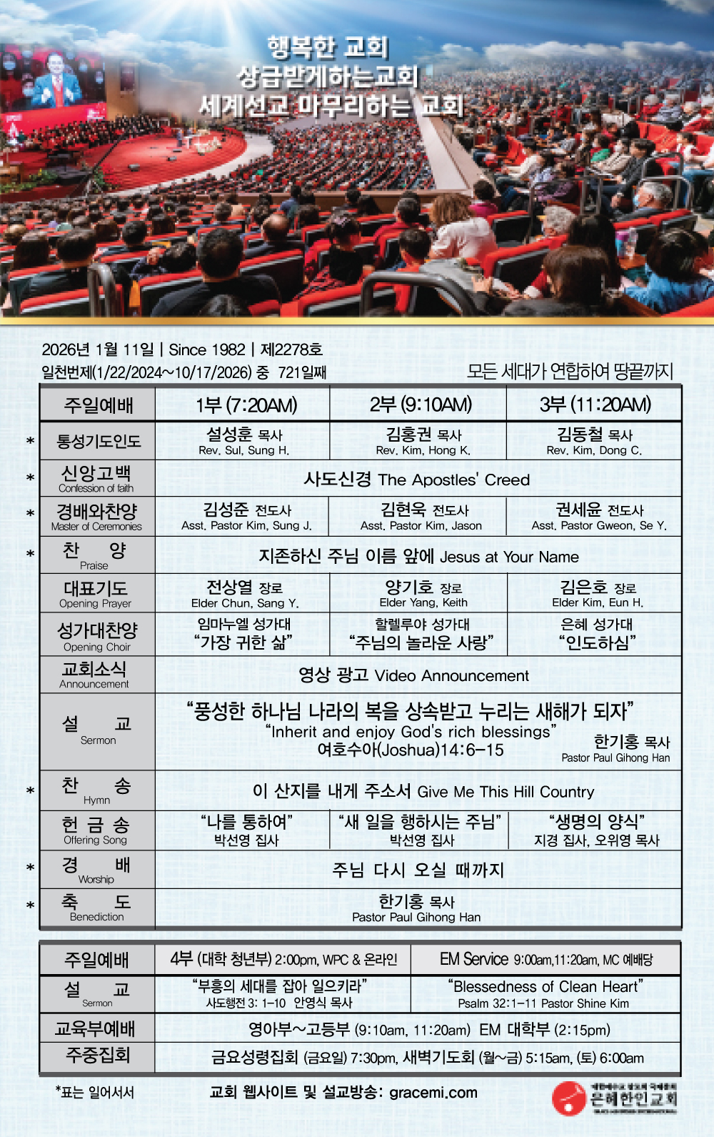 작성자 : 은혜한인교회 작성일 : 2026-01-11 조회수 : 392