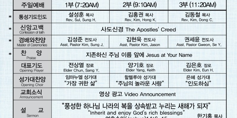 011126 교회주보 전체 > 주보보기 (BULLETIN)