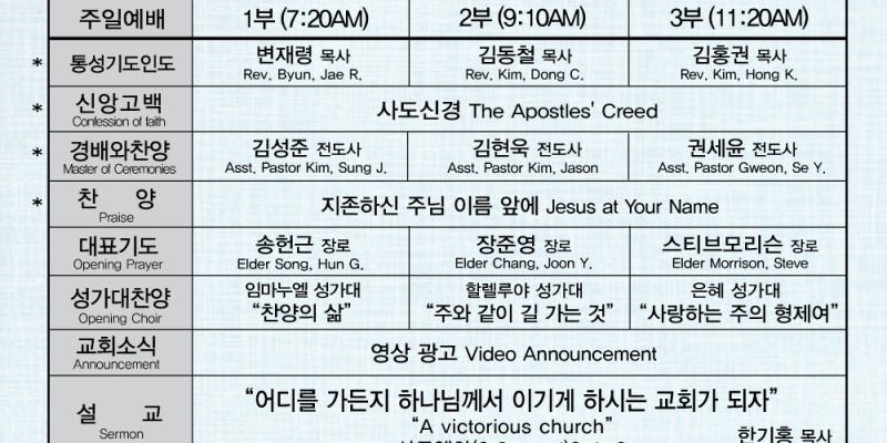011826 교회주보 전체 > 주보보기 (BULLETIN)