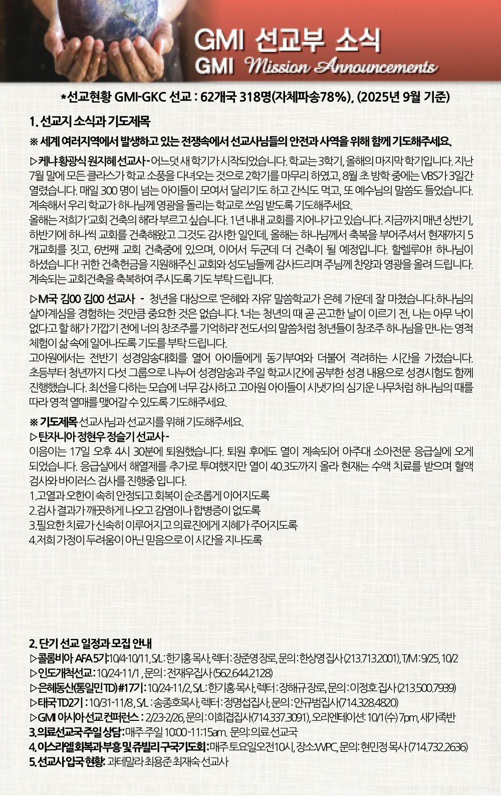 선교소식 MISSION NEWS