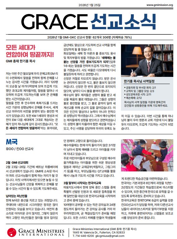- 다음글2026년 1월 11일 Grace 선교소식 26.02.08