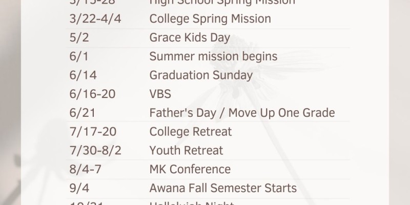 EDUCATION PLAN교육부 사역계획 2026 교육부 행사 일정 페이지 정보 WRITER : 은혜한인교회 DATE : 2026-01-15 목록 본문 2026년 교육부 행사 일정 다음글교육부 겨울 수련회 25.11.24 LIST 댓글 0 댓글목록 등록된 댓글이 없습니다.