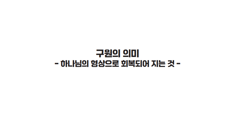 이 땅에 사는 모든 인생은 에덴동산으로부터 영원한 사망으로 쫓겨난 죄인들이다. 그래서 하나님이 이 죄인들을 살리려고 예수라는 이름으로 육신이 되셔서 속죄 제물로 십자가에서 희생을 당하신 것이다. 우리가 죄를 사함 받고 영원한 생명으로 나아갈 수 있도록 십자가에서 피 흘려주신 것이다. 이를 믿는 자마다 훼손된 하나님의 형상이 회복되어져 하나님이 창조하셨던 원래의 온전한 인격체로 돌아갈 수 있게 된 것이다. 이렇게 완전한 영혼, 완전한 육체로 회복되어 하나님의 성품을 순종의 삶을 통하여 반사하는 것이 진정한 구원이다.
