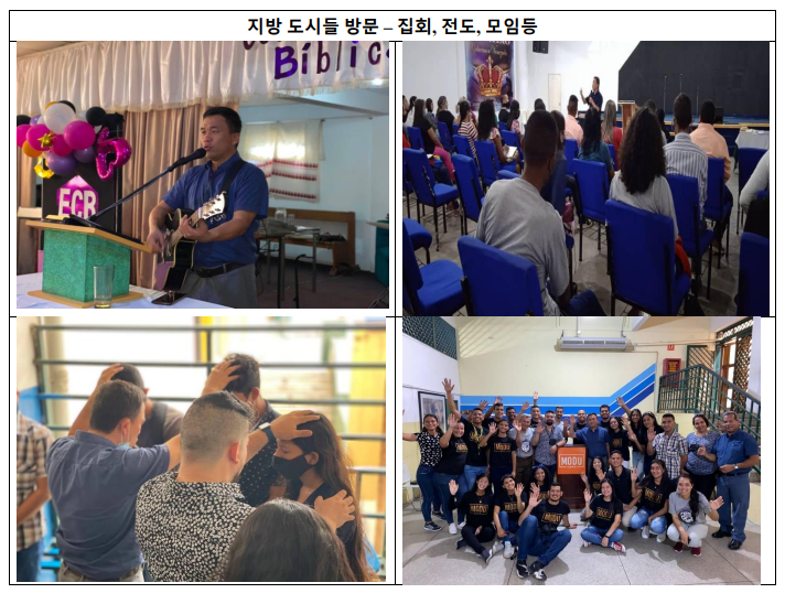 어려운 환경과 광야를 지날지라도 부활의 주님과 소망이 있기에 기쁨과 평안이 충만합니다. 이러한 은혜가 기도해주시는 모든 동역자님들 가운데 충만하기를 축복합니다. (대학생 사역 수련회_MODU CAMPUS 전국 수련회) 2 월 26 일- 3 월 1 일까지 전국 8 개 도시에서 모인 90 명의 대학생들과 수련회를 했습니다. 1 년남짓 팬더믹 가운데 시작한 대학생 사역인지라 여전히 부족한 부분이 많습니다. 계속적으로 비전을 나누고 은혜 받을 수 있는 시간이 필요합니다. 이 시간을 통해 함께 사역하는 현지 교회들의 대학생 지체들과 하나되어 함께 찬양하고 기도하며 은혜가운데 뜻 깊은 시간을 보냈습니다. 이 수련회에 참석하기 위해 오랫동안 돈을 모으거나, 빵을 만들어 파는 등으로 각자의 차비를 마련하여 수련회에 참석한 이들의 간증을 들으며 학생 한 명 한명이 얼마나 귀한지, 또 주님께서 이 사역을 얼마나 기뻐하시는지 다시 한 번 알게 됐습니다. 수련회를 마치고 각자의 도시로 돌아간 학생들과 리더들이 그동안 발을 띠지 못한 대학교 전도와 양육을 하기 시작했습니다. 함께 모여 있는 SNS 에서 사진과 간증을 올리며 서로를 격려하며 힘있게 사역하고 있는 모습에 참 감사합니다. (MODU CAMPUS CENTRAL) 카라카스에서는 대학생 사역의 센터로서의 역할과 모델을 보여주기 위해서 매일 4 개 대학에서 전도와 양육을 하고 있습니다.특별히 감사한 것은 시몬 로드리게스라는 대학에서 일어나고 있는 일들입니다. 지금 베네수엘라의 많은 국립 대학들은 교수들이 턱없이 부족합니다. 제대로 된 월급을 받지 못하는 국립 대학교 교수들은 베네수엘라의 오랜 경제적 문제와 어려움을 겪으면서 나라를 떠났거나 다른 일자리를 찾아 교수직을 그만두었기 때문입니다. 이로 인해 저희 선교단체 MODU CAMPUS 가 이 대학에서 인정받아 더 많은 사역들을 할 수 있게 됐습니다. 3 월에 300 명을 대상으로 시네마 포럼을 잘 마쳤고, 계속해서 다른 행사들을 계속해서 준비하고 있습니다. 이렇게 주님은 대학 사역의 문을 열고 계십니다. 베네수엘라를 대표하는 대학인 UCV 에서 9월에 강의 요청이 들어왔습니다. 언젠가 이 나라의 모든 대학에서 성경적 세계관을 가르치며 복음을 전하게 될 날을 믿음으로 바라봅니다. 할렐루야!!!!! (지방방문_마라까이, 시우닷 볼리발, 시우닷 과자나) 3월에는 엘리야 선교사와 함께 세 곳의 도시를 방문하고 왔습니다. 온라인으로 기독교 세계관 학교 기본코스를 졸업한 사람들과 모임을 갖고 비전을 나누었으며, 또 열심히 사역하고 있는 Modu Campus 팀과 함께 대학에서 강의와 전도 하며 비전을 나누고 교제를 하고 돌아왔습니다. 베네수엘라 지방도시들은 환경이 계속해서 너무 열악합니다. 2주일에 단 한 번만 주유를 할수 있다 거나, 휘발유가 없으니 당연히 자동차로 이동이 되지 않고 대부분 걸어서 또는 자전거로 이동을 하며 사역을 하고 일을 합니다. 날씨는 덥고 물이나 전기는 수시로 끊깁니다. 그럼에도 불구하고 하늘의 소망을 보며 사역하는 수많은 크리스천들이 이 나라에 남아 기도하고 있기에 부흥과 변화가 오리라 믿습니다. (베네수엘라 신학교 합숙 모임) 드디어 2년만에 온라인으로만 모였던 신학교모임을 4 월 2 일 - 9 일 전국에서 모이신 93명의 목회자들을 모시고 선교센터에서 대면으로 모였습니다. 할렐루야!! 판데믹 가운데 모일수 없는 지경에서 온라인으로도 은혜를 나누며 함께했지만 이렇게 서로의 얼굴을 보며 기도하고 교제하며 함께 할 수 있는 시간이 얼마나 귀하고 감사한 시간이었는지 모르겠습니다.이번 모임은 제가 복음을 주제로 강의했습니다. 중,남미의 기독교는 카톨릭과 접목되어 온전한 복음이 정착되지 않았습니다. 거기에다 번영신학과 싸구려 복음이 판을 치고 있기에 온전한 복음을 목회자들이 알고 경험하고, 전하는 것이 중요합니다. 감사하게도 이번 모임에서 강한 말씀의 부흥을 경험했습니다. 쉬는 시간과 저녁 시작에도 시간을 쪼게 가며 깊이 말씀에 집중하며 복음을 경험하는 시간이었습니다. 많은 목회자들이 강의에 많은 은혜를 받고 가장 좋은 시간이었다고 고백했습니다. 이제 우리 목사님들이 각자의 자리에 돌아가서 복음 안에서 살아갈 때 부흥을 경험할 수 있도록 기도 부탁드립니다. (콜롬비아 목회자 티디 2 기) 할렐루야!!! 그동안 판데믹으로 미뤄졌던 콜롬비아 목회자 티디가 5 월 30 일부터 6 월 3 일까지 목회자들을 대상으로 열립니다. 스피리쳐 리더로 송종호 목사님을 모시고 렉터로는 정해규 집사님께서 섬겨주십니다. 팀멤버로 미국 은혜교회, 콜롬비아 그리고 베네수엘라에서도 목사님들이 섬기러 가십니다. 특별히, 베네수엘라에서는 어려운 와중에서도 차비와 여비를 마련하셔서 그동안 받은 은혜를 콜롬비아로 나누러 가시는 베네수엘라 팀멤버들을 위해 기도 부탁드립니다. 또한 세 나라의 팀멤버들이 아름다운 연합으로 주님께 영광 돌릴 수 있도록 기도해주시고 현재 66 명의 콜롬비아 목사님들께서 캔디데이트로 접수를 하셨는데 5 월 중순까지 총 80 명의 담임목회자들이 접수를 마칠 수 있도록, 또한 캔디데이트들이 큰 은혜를 받는 목