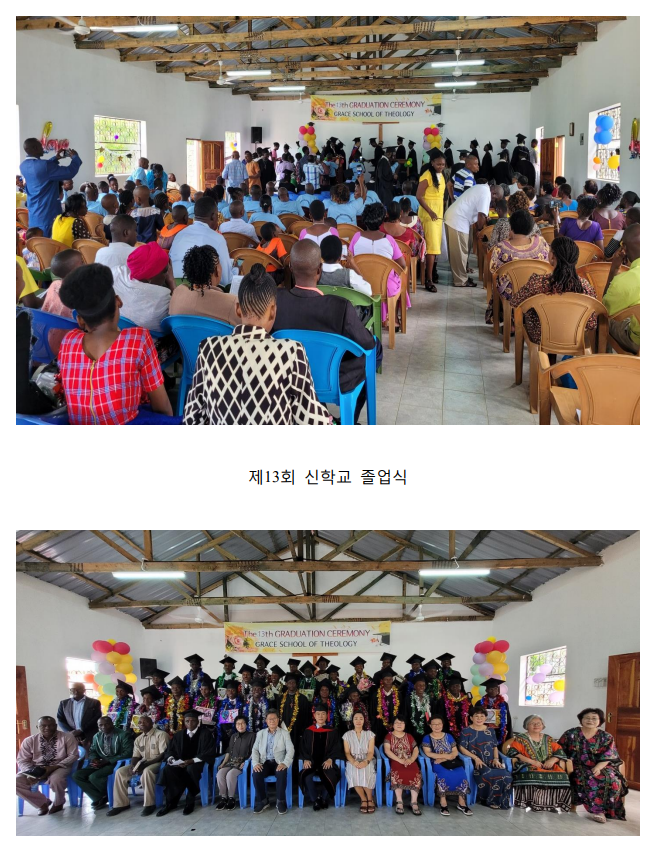 저희는 여전히 매일 아침 각 반별로 예배를 드리며, 매주 금요일에는 전교생 채플 시간을 통해 아이들의 지식과 신앙이 함께 자라고 있습니다. 예수님 안에서 좋은 열매 많이 맺는 가지들이 되도록 기도해주세요. 신학교는 지난 5월 13번째 졸업식이 있었습니다. 이번에는 특별히 은혜한인교회 중보기도팀에서 방문해 주셔서 전혜숙 목사님께서 신학교 강의를 해주시고, 권사님들은 학교 아이들에게 복음을 전하는 귀한 시간을 함께 했습니다. 특별히 13기 졸업생들은 팬데믹으로 인해 2년을 쉬고 입학한지 4년만에 학사모를 쓰게 되어 더욱 뜻 깊은 시간이었습니다.