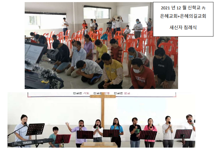 그리고 중간에 약 3 개월 프놈펜 교회에서 다시 예배드리다가 두 번째로 예배모임이 금지되었을 때, 우리 신학교가 있는 깜뽕스쁘 주는 프놈펜보다 정부방역이 엄격하지 않았기에 프놈펜 은혜의 길 교회 예배를 저희 신학교에서 다시 온/오프라인으로 섬기게 되었고, 또 방역이 풀리면서 올해 나날이 부흥한다는 한 한인 선교사님 교회 주일학교 영상 예배 모습 초 다시 교회가 프놈펜으로 이전하고.. 암튼 결론은^^ 신학교 내에 새로이 은혜교회가 탄생했습니다. 모두 초신자입니다. 지난 코로나 기간동안 주님께서 보내주신 이 마을 성도들 입니다. 여러모로 다사다난했고 지금도 하루하루가 다사다난이지만ㅎㅎ 오직 주님의 은혜로 여기까지 왔습니다. 에벤에셀의 하나님께 영광을 돌려드립니다!