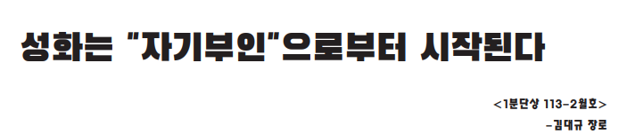 예수님께서는 분명하게 “나를 따라오려거든 네 자신을 부인하고 날마다 네 십자가를 지고 나를 좇으라” 고 말씀하셨다(눅9:23). 이 말씀은 진정한 구원과 성화는 주님 앞에서 “자기부인”이 있어야 한다는 메시지인 것이다. 결론적으로 말해 옛사람이 변치 않고 옛모습 그대로 살아서는 진정한 구원, 진정한 성화에 들어설 수 없다는 말이다. 그렇기에 나의 생각, 뜻, 사고관, 생활철학, 지식, 고집, 욕망, 명예, 권력, 지위, 소유물, 세상 등 내게 해당된 것들을 다 내려놓고 주를 따르는 것이다. 이것이 “자기부인”이다. 자신을 다 내려놓는다는 것은 세상과 구별되는 것이며, 주의 십자가에 죄와 함께 자신이 못박혀 죽는 것이기도 하다. “자기부인”은 곧 주의 뜻대로만 따르는 것을 의미하는 것으로 매일 같이 자신의 십자가를 지고 주를 좇아가는 것이다. 여기서 자기 십자가는 삶 속에서 부딪치는 역경이나 문제들을 말하는 것이 아니다. 주께서 걸었던 길을 따르며 하나님을 위하여 당해야 하는 고난과 핍박들을 감내하는 것을 말한다. 믿음을 지키기 위한 인내와 선한 싸움인 것이다. 이해하기 쉽게 끝까지 주님을 따른 열 한 제자(가롯 유다 제외)들을 볼 수 있다. 그들은 생업, 가족 등 세상에서 자기의 속한 것들에 연연하지 않고 포기하였다. 그리고 주께서 승천하신 후 복음을 위해 겪었던 수난과 심지어 순교했던 십자가의 길이 바로 이러한 예일 것이다. “내가 그리스도와 함께 십자가에 못박혀 죽었나니 그런즉 이제는 내가 산 것이 아니요 오직 내 안에 그리스도께서 사신 것이라 이제 내가 육체 가운데 사는 것은 나를 사랑하사 나를 위하여 자기 몸을 버리신 하나님의 아들을 믿는 믿음 안에 사는 것이라.”(갈2:20) 의 말씀은 “자기부인”과 함께 자기 십자가를 지는 자의 모습이자 신앙고백과도 같다. 그런데 주를 믿는다고 하면서도 직분과 상관없이 “자기부인”이 없는 이들을 흔히 볼 수 있다. 이를 어떻게 이해를 해야 할지 당혹스러울 때가 많다. 왜 그럴까? 여러 가지로 생각해 볼 수 있다. Key는 진정으로 내가 주 안에 있느냐 아니면 주 밖에 있느냐의 문제일 것이다. 진정으로 성령의 인치심을 받아 내 안에 하나님의 영이신 성령님이 내주하신다면 하나님이 나와 함께 하시고 내가 주 안에 있다는 말이다. 하나님은 말씀이시다. 말씀으로 창조하셨고 말씀으로 통치하신다. 그 말씀이 하나님의 복음으로 내 안에 들어와 내 인격체를 새롭게 변화시켜 내 육신이 작은 예수의 모습을 나타내게 하신다. 주 안에서 믿음이 말씀으로 실체화 된 모습인 것이다. 옛 사람이 아니라 새 피조물이 되어 하나님의 영광을 드러내게 하신 것이다. 그러므로 주 안에 있는 자는 “자기부인”을 하게 마련이다. 내가 죽는 것이다. 나의 모든 것을 아낌없이 내려놓는 것이다. 참회개, 참 회복을 통하여 구원과 함께 성결한 자, 세상과 구별된 거룩한 자가 되는 것이다. 진정한 성화의 삶을 사는 자인 것이다. 기도와 말씀으로 온전케 됨으로 하나님과 동행, 동거하는 자가 되어 현존하는 하나님 나라에 거하는 것이다. 주안에 내가, 내안에 주와 주의 말씀이 거하는 참 된 하나님의 백성으로 주님의 재림을 준비하는 자인 것이다. 이러한 자, 이러한 삶을 누리는 자는 보이는 이 세상에 묶여 있지 않는다. 오히려 이 세상을 뛰어 넘는 믿음으로 승리하는 삶을 사는 것이며 주께서 공급하시는 신령한 복인 하나님 나라의 의와 희락과 평강을 이 세상에서 누리는 것이다. 우리가 이런 복을 누리려면 참 회개, 참 회복을 이루어 가며 눈에 보이는 세계에 현혹되지 말고 내쳐야 한다. 내 중심의 삶을 버리고 하나님의 관점, 하나님 중심의 삶을 살며 하나님, 주 예수님, 성령님과 하나로 연합되어야 하는 것이다. 이리 볼 때 지금우리는 진정으로 주 안에 온전히 있는지를 살펴볼 필요가 있다. 우리는 완전한 자가 아니다. 하나님의 피조물이다, 따라서 성령님의 인도하심에 순종하여 참 회개, 참 회복, 참 자기부인을 통하여 믿음이 장성한 수준에 이르기까지 인내하며 성숙해져야 한다. 그래야만 성화를 거쳐 영화로 들어갈 수 있는 것이다. 고로 “자기부인”은 우리가 주 안에 있도록 주께서 친히 명령하신 말씀이다.댓글목록