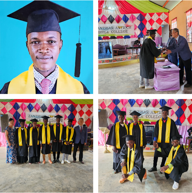 제9기 성경대학 5명 학생들은 4월 15일에 중간시험, 5월 21일에 마지막 시험을 본 결과 전부 합격하였고, 5월 11일에는 키딤니 파울로 목사 교회에서 노방전도 훈련, 5월 28일~ 6월 1일까지 신약 성경통독 훈련을 마쳤고 6월 18일에 졸업식을 하였습니다.