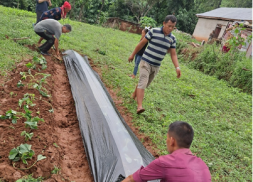 건기가 끝나갈 무렵부터 현지인들은 여러 가지 농작물을 더 많이 심었습니다 우카룸파의 . 시장은 매주 수요일 아침 약 2시간 동안만 열리기 때문에 저희도 집 앞에 작은 텃밭을 만들었습니다 잎채소는 . , , 일주일 동안 보관하다 보면 상해서 못 먹게 되는 경우가 있어서 호박 오이 상추 부추 깨 파를 , , , . 심었습니다 그런데채소들은 거름을 주고 벌레도 잡아 주고 잡초도 뽑아 주는 등 정성을 들여도 잘 자라지 않지만 잡초는 , 여기저기에서 싹이 나고 쑥쑥 자라서 뽑아내도 며칠 뒤엔 또 다른 싹이 나와 있습니다.