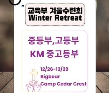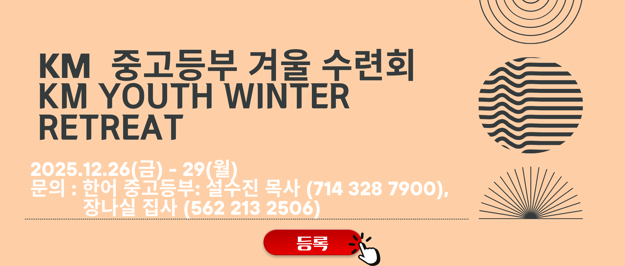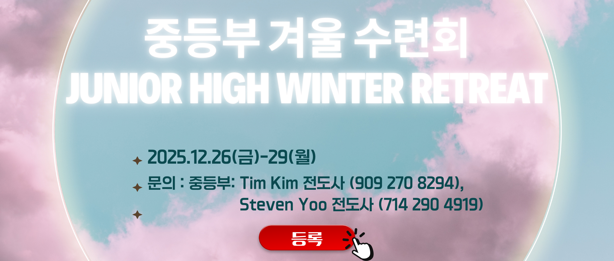 2025 교육부 여름 성경학교우리 자녀들이 긴 여름방학이 시작되었는데, 방학기간 동안 온전히 말씀안에서 양융되어 질수 있는귀한 시간이 되고 있습니다. 무엇보다도 가족과 함께 긴 방학시간을 보내는 우리 아이들이말씀 속에서 더욱 구별된 삶을 살 수 있도록, 성령충만 하도록 모두 함께 중보기도 해야 하겠습니다.