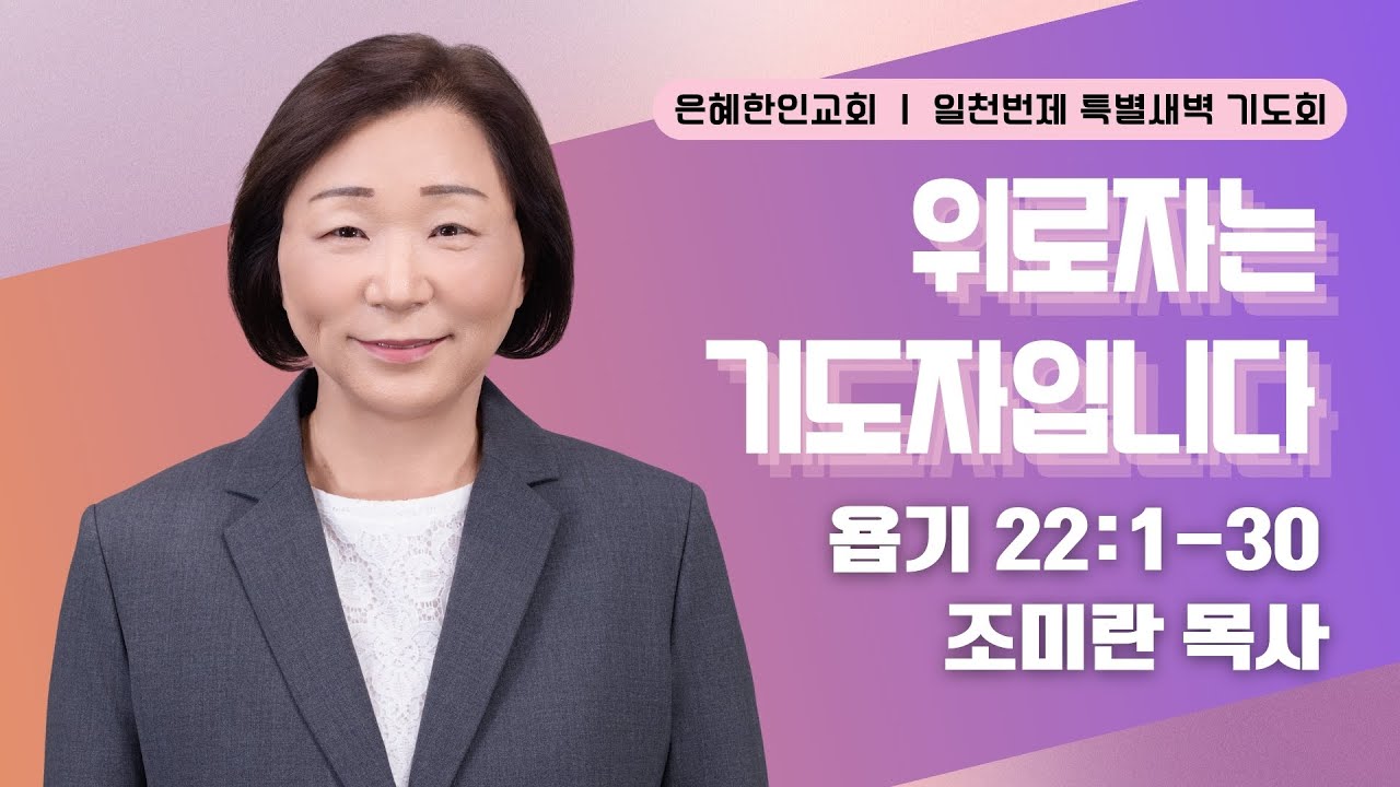 [은혜한인교회 일천번제 특별새벽기도] 위로자는 기도자 입니다 • 욥기 22:1-30 • 조미란 목사 111425