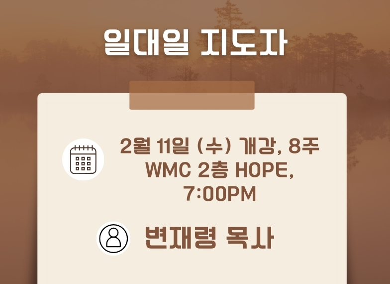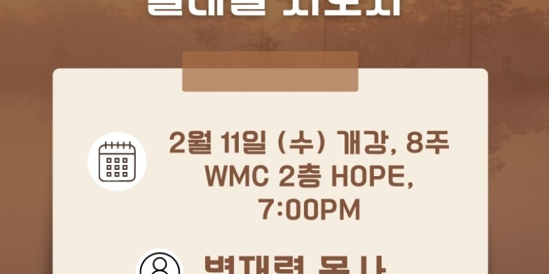 개강 : 2/11(수) 7:30PM WMC 2층 HOPE, 8주 과정