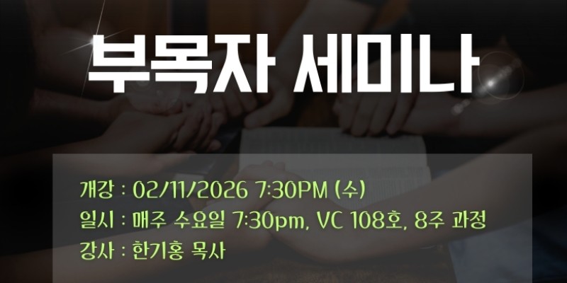 개강 : 2/11(수) 7:30PM VC 108호, 8주 과정