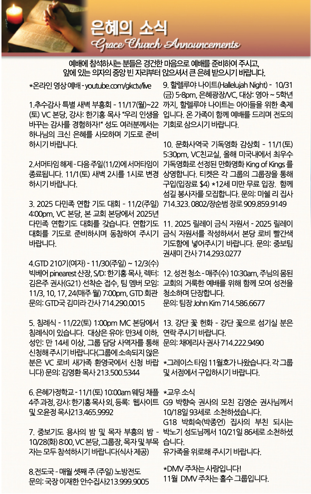작성자 : 은혜한인교회관리자 작성일 : 2025-10-26 조회수 : 1,134