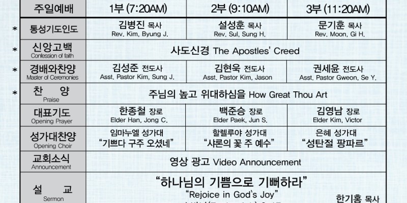 121425 교회주보 전체 > 주보보기 (BULLETIN)