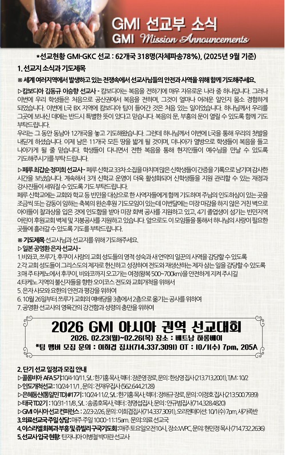 선교소식 MISSION NEWS