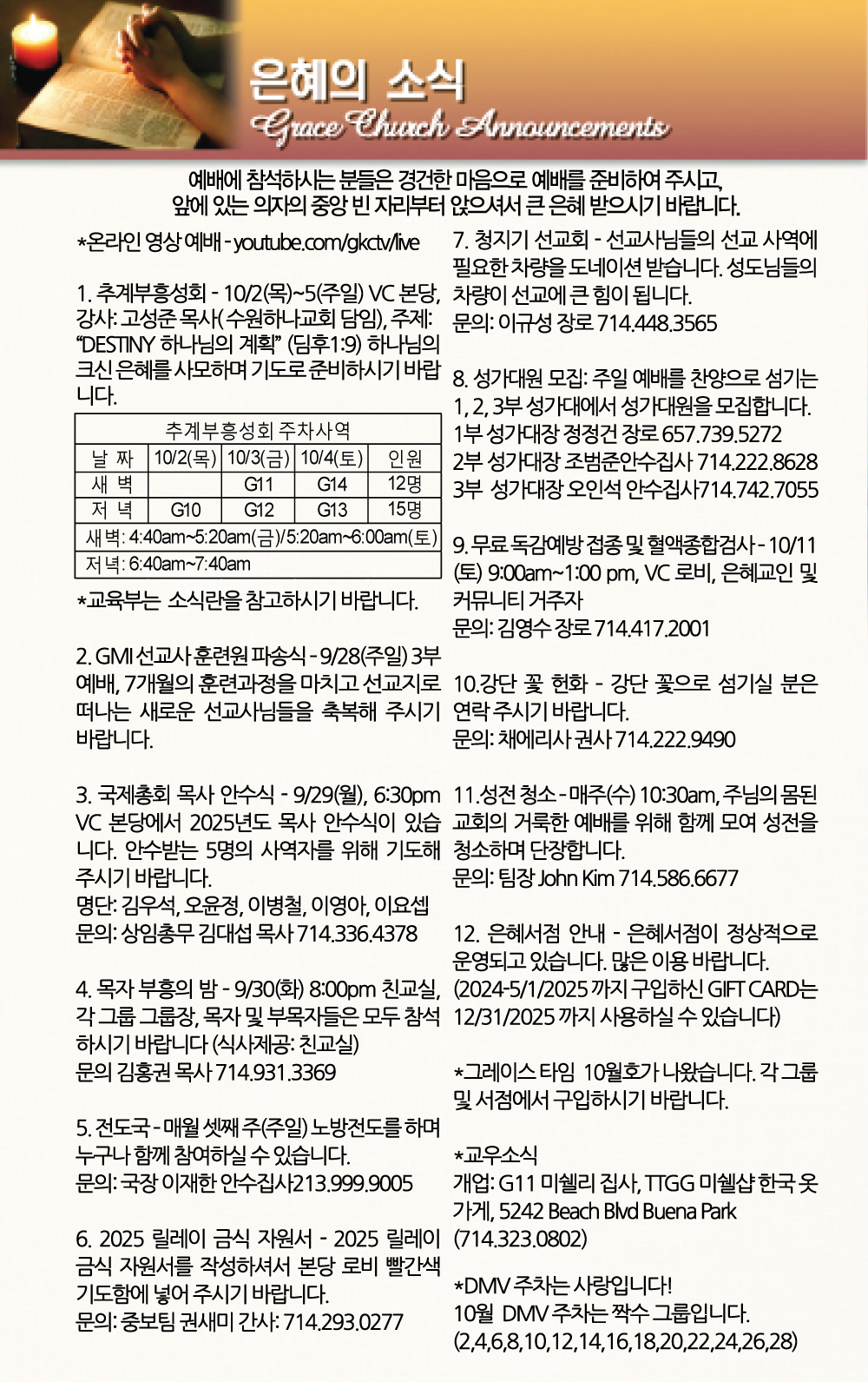 선교일정안내 MISSION SCHEDULE