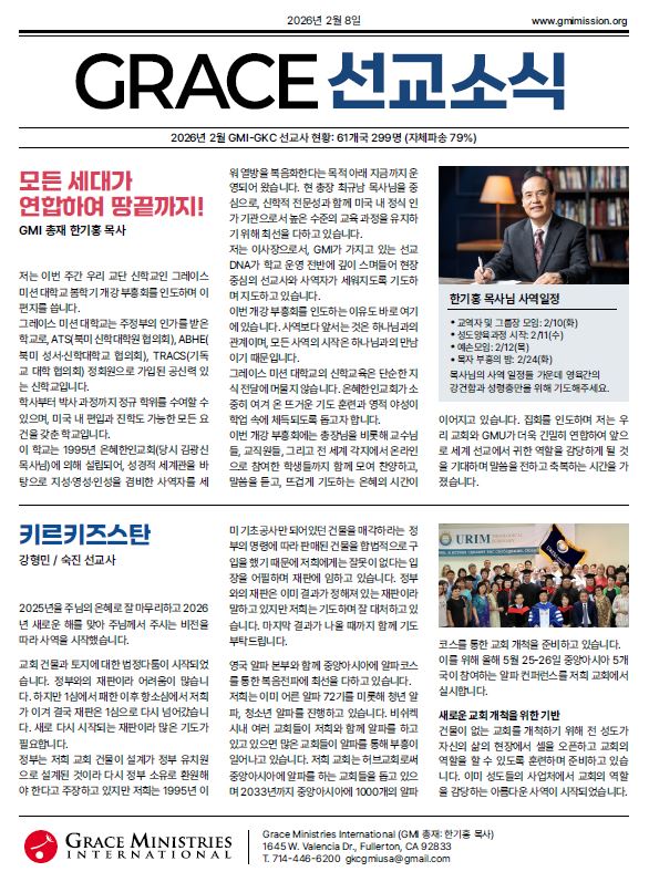 - 이전글2026년 2월 22일 Grace 선교소식 26.02.25