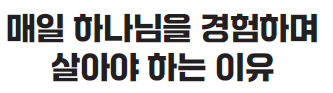 세상 사람들이 갖고 싶어도 갖지 못하는 것이 있다. 바로 하나님을 경험치 못한다는 것이다. 육신의 정욕, 안목의 정욕, 이생의 자랑에 눈이 가려진 까닭이다. 우리는 하나님 앞에 올바르게 살아야한다. 이는 우리의 일상이 하나님을 알고 경험하며 하나님과 동행할 때 얻어지는 것이다. 그렇기 때문에 세상과 구별된 삶을 살아야 한다고 말씀한 이유가 여기에 있다. 이것은 하나님의 뜻이기도 하다. 우리의 삶속에서 하나님을 알고 경험할 수 있는 답은 예수님의 마지막 기도에서 “영생은 곧 유일하신 참 하나님과 그의 보내신 자 예수 그리스도를 아는 것이니이다”(요17:3)라고 하신 말씀에서 찾을 수가 있다. 이 말씀의 의미는 하나님과 예수 그리스도를 안다는 것이 비단 지식적인 차원만이 아니란 것이다. 구원을 통해 내안에 거하시는 성령님이 모든 것과 말씀을 알게 하고 깨닫게 하여 주를 믿으므로 주님을 만나고 주를 느끼며 교통함을 지속적으로 경험케 되는 것을 말하는 것이다(요14:26). 왜 이것이 우리에게 필요한가? 하나님의 말씀으로 변화되어 모든 행실에 거룩한 자가 되어야만 하기 때문이다(레19장).하나님의 뜻대로 사는 자가 되기 위함이다. 구원과 함께 하나님의 임재와 영광이 함께 하는 자가 되기 위해서이다. 우리가 하나님을 매일 경험하며 살아가는데에는 여러 가지 길이 있다. 책자도 나와 있고 교재도 있다. 그러나 여기서는 하나님을 경험하기에 앞서 선행해야 할 필요가 있다고 생각되어지는 점들을 보고자 한다. 첫째 나를 내려놓아야 한다. 우리는 하나님의 새로운 피조물로 하나님의 것이다. 따라서 성령의 인도하심에 따라 기도와 말씀을 통해 하나님의 뜻을 헤아려 순종하며 사는 것이 당연하다. 내가 아닌 하나님 중심의 삶을 살도록 하는 것이다. 이는 내가 죽어 성령의 열매들로 맺고, 변화되어 가야만 주님의 참 제자가 되기 때문이다. 둘째 죄로부터 멀어져야 한다. 철저한 회개를 통해 특히 습관적으로 반복되어지는 죄성에 따른 습성, 생각, 삶을 끊어내야 한다. 하나님은 성결하시고 의롭고 거룩하시다는 성품이 우리에게 주는 의미를 항상 기억하고 따라야한다. 이러한 점은 구원과도 밀접한 관계가 있다. 죄를 버리지 않는 한 하나님은 같이 하지 않으신다. 셋째 하나님 중심의 기도를 하는 것이다. 습관적으로 지속해야 할 부분이다. 기도의 방법은 내 필요가 아니라 하나님의 심정을 가지고 나를 향하신 뜻을 깨달아 기도하는 것이다. 내 마음속을 비우고 성령의 인도하심을 구하며 깨달음이 주어지는 대로 기도하는 것이다. 이는 하나님이 원하시는 뜻을 이루려는 자가 되어야하기 때문이다. 되도록이면 일상에서 형식을 취하지 말고 수시로 편하게 하나님과 속삭이고 대화하는 것이 습관화되어야 한다. 하나님과의 만남과 경험은 기도로부터 시작된다. 넷째 말씀을 올바르게 이해하고 읽으며 삶에 적용하는 것이다. 말씀을 무작정 읽는 것보다 말씀을 공부하여 올바르게 이해하고 그 말씀이 지식이 아닌 영적인 생명이 되어 삶에 적용해야만 하나님의 뜻대로 사는 자가 되는 것이다. 말씀은 지식이나 신학이 아니다. 우리의 생명, 우리의 삶이 되라고 주신 하나님의 지침서이다. 다섯째 주님이 가르쳐 주신 사랑을 삶이 되도록 실천하는 것이다. 주께서 “내가 너희를 사랑한 것같이 너희도 사랑하라.”고 하신 대로 서로를 섬기고 사랑하므로 주와 하나가 되고 서로가 하나 되도록 최선을 다해야 한다. 사랑은 참 믿음의 출발점으로 성령님의 임재 안에서 하나님을 경험하고 하나님과 동행할 수 있는 첩경이 된다. 이러한 삶이 자리를 잡아 갈수록 하나님을 더욱 깊게 경험하게 되고 현존하는 하나님 나라에서 하나님과 동행하는 자, 하나님을 위한 삶을 사는 자가 되는 것이다. 하나님을 경험하며 순종한 믿음의 선진들은 무수하다. 아브라함은 믿음을 통하여, 노아는 순종을 통하여, 엘리야는 기도를 통하여, 베드로는 사랑을 통하여. 사도 바울은 만남을 통하여 하나님을 경험하며 주어진 하나님의 뜻을 이루었다. 우리가 믿음의 선진들처럼 하나님을 경험하며 하나님의 뜻을 따라 살아야 하는 이유는 무엇보다도 하나님과의 관계가 바로서야 구원의 완성을 향해 달려갈 수 있기때문이며 순종의 삶을 살기 위함이다. 하나님의 거룩한 백성이 되기 위해서이다. 또한 하나님과 교통하며 경험하고 있다면 분명히 현존하는 하나님나라에서 하나님과 동행하고 있기에 영적 전쟁에서 승리하는 자, 세상을 이기는 자가 되기 때문이다. 이리될 때 매일의 삶이 천국의 소망을 이루어가며 경험할 수가 있기 때문이다. 우리는 하나님의 영광을 담은 질그릇이라고 했다. 고로 하나님을 경험하며 동행하는 자에게는 모든 것이 주의 것으로 보이게 된다. 세상에 있으나 세상에 있는 것이 아니다. 따라서 우리는 주의 질그릇답게 하나님의 사랑과 복음을 이 세상에 드러내는 존귀한 자가 되어야 한다. 하나님의 진리로 거룩한 백성이 되어야 한다. 그러기에 우리에게는 매일 하나님을 경험하며 동행해야 하는 것은 필수적인 것이다.댓글목록
