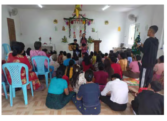 양곤에 산 지도 10년이 넘어서 사역을 도와줄 지인들도 많고 교인들도 가르쳐 전도할 때 동행하게 하고 행사가 있을 때는 봉사하게 합니다. 4주 동안 300명의 사람이 교회를 방문하여 복음을 들었습니다. 선교사가 시무하는 은혜교회에서도 12월 25일 지인들을 초청해 주님의 사랑을 나누었습니다. 1부는 예배를, 2부는 특별한 이벤트를 가졌는데 손님들과 함께 춤추고 아이들은 예수님의 탄생 이야기를 연극으로 공연하였습니다.