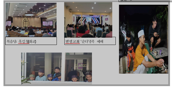 동네 금요 어린이 성경공부방: 한인 교회에서 봉사활동을 하고 있는 인도네시아 자매가 선교사님들과 함께 동네에 거처를 마련하고 변두리 지역 아이들을 모아다가 매주 금요일 성경공부방을 열고 있다. 비록 크고 작은 핍박이 있지만 하나님의 도우심으로 잘 진행되고 있다. 무슬림 어린이 집 아이들이 더욱 마음에 걸리는 부분이다.