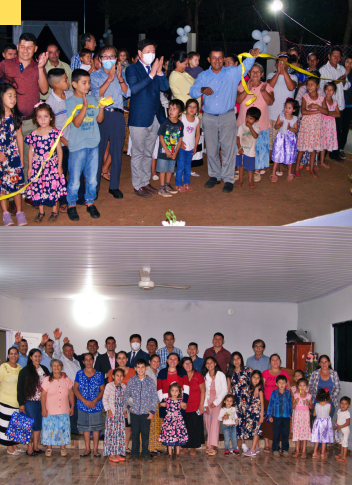 성전 건축- 수도로 부터 약 200Km 떨어진 전형적인 시골 마일 Mbutuy(무뚜으) 지역에 세워진 작은 교회 그곳에 아이들이 모이기 시작했고 다음 세대를 위한 교회 리모델링과 성경 공부 처소및 음식을 나눠 줄 건물을 건축 하였습니다. 이곳에서 농사를 지으며 온 몸으로 헌신하는 Esteban 목사님과 사모님의 헌신으로 교회가 든든히 서가고 있습니다. 특별히 에스떼반 목사님은 저희가 운영하는 온라인 신학교를 통해 수학을 하고 있습니다. 전기 사정이 안 좋아서 자주 전기가 나가는데도 불구하고 핸드폰 하나로 온라인으로 아주 성실하게 공부하고 있습니다. 또한 키보드를 교회에 선물로 주었는데 이제는 음악 교실을 열고 다음 세대를 위한 찬양팀을 잘 만들어 가고 있습니다.