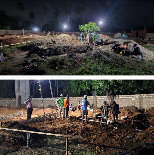 학교 건축은 우기철이 오기전에 기초공사를 끝낼계획으로 3월14일부터 공사를 시작하여 부지런히 진행했지만, 기계 사용 없이 인력만으로 작업하다 보니 공사 기간이 길어졌고, 4월 중순에 시작된 대우기철 폭우로 인해 공사가 중단되었습니다.