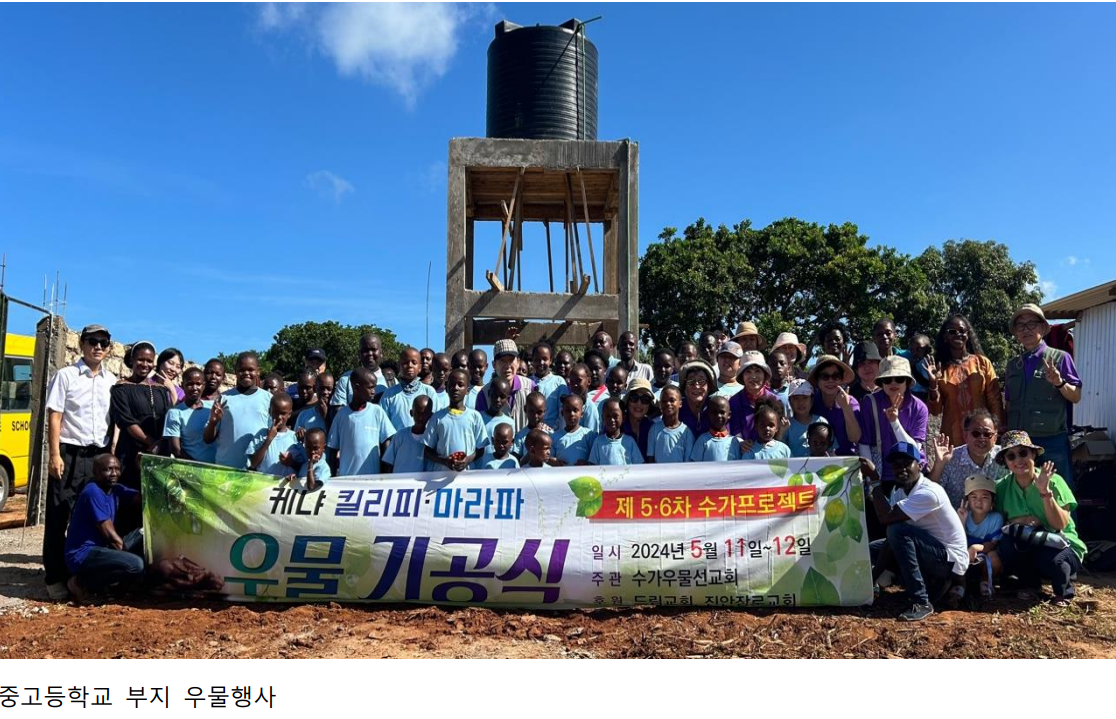 한군데는 킬리피에 있는 중고등학교 부지인데, 우물을 파고 그 물로 담장 공사를 할 수 있었습니다. 또 다른 곳은 마라파에 있는 브릿지 은혜교회인데 이곳은 마라파 입구에 위치가 좋아 성도들은 물론 주위에 많은 이웃들도 함께 물을 사용할 수 있게 되었습니다.
