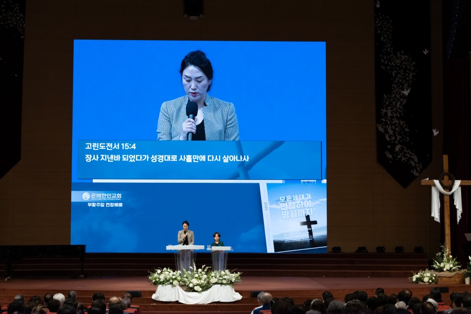 이날 예배는 한기홍 목사가 말씀을 전하며, 부활의 신앙으로 세상을 이기는 믿음을 가질 것을 성도들에게 권면하였습니다.